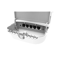 OmniTIK 5 PoE ac features five Gigabit Ethernet ports and support for 802.11ac. It’s equipped with a powerful 720MHz CPU, 128MB RAM, high power 802.11a/n/ac Dual Chain wireless (support for AC as well as backwards compatible with regular 802.11a/n CPE) and comes with a new design weatherproof outdoor enclosure, two integrated 7.5dBi 5GHz omni antennas, a power supply, a PoE injector and a mounting kit.