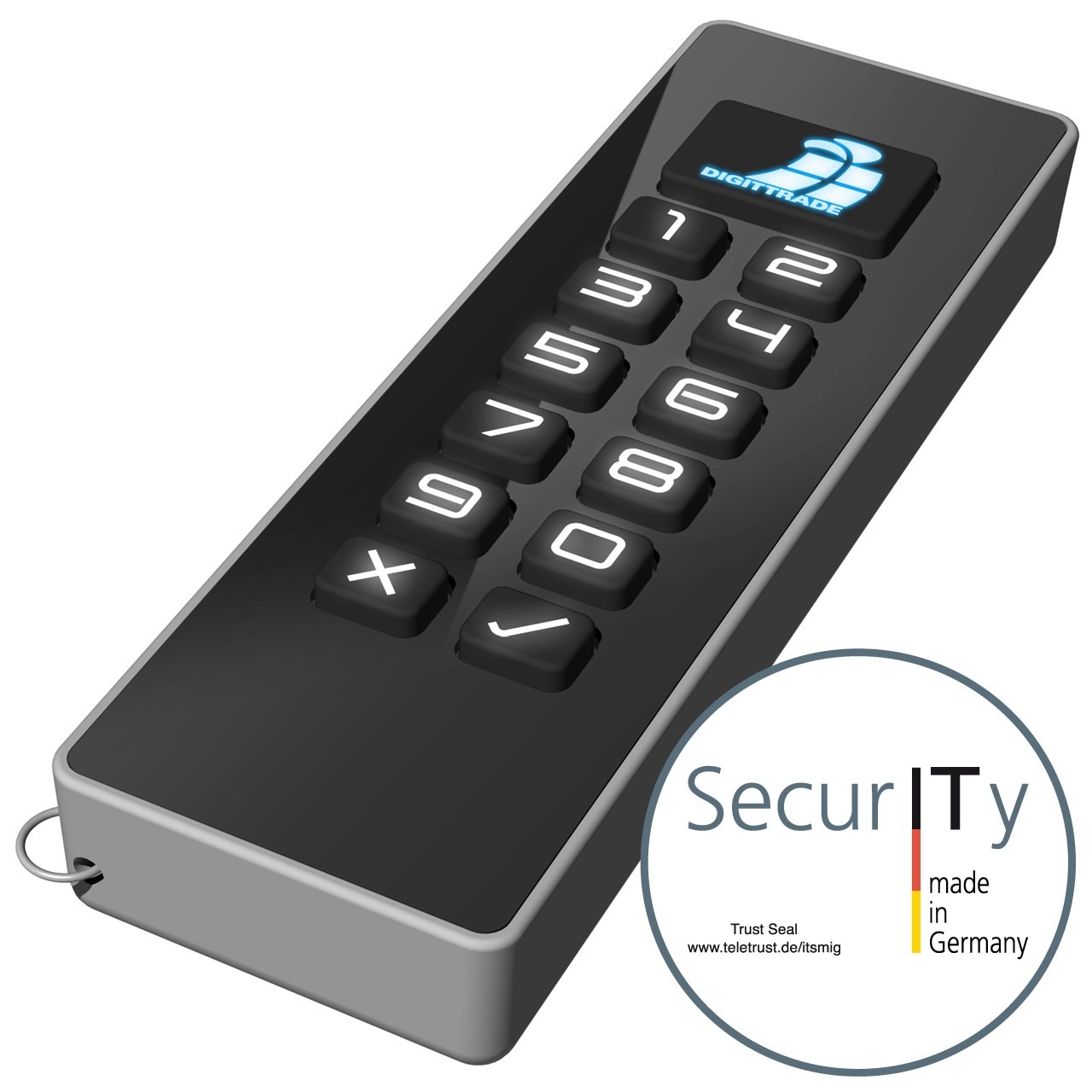 The KOBRA Stick from Digittrade is an encrypted USB-C memory stick that enables the secure storage and transport of sensitive business and private data. It is easy to use and offers secure protection of all stored data. Only one user PIN can be configured, which carries with it all the issues with shared credentials if the drive is shared. For increased security and convenience, you may want to consider Kobra Stick VS, which is the next generation of this offering, with many advanced management features not found in this version. This one is IP65 certified, which the new model is not.